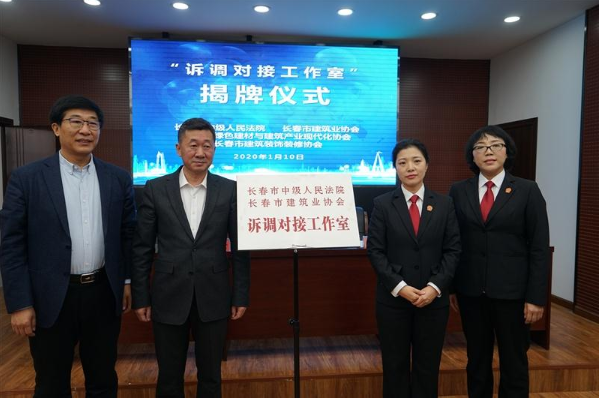 10日上午,长春市中级人民法院联合长春市建筑业协会、长春市绿色建材与建筑产业现代化协会、长春市建筑装饰装修协会共同成立的“诉调对接工作室”正式揭牌。