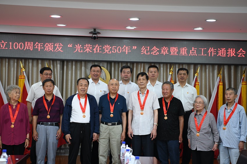 按照中央和省委决定,今年首次颁发“光荣在党50年”纪念章,颁发给健在的截至2021年7月1日党龄达到50周年、一贯表现良好的党员。省信访局共有14名老党员获得“光荣在党50年”纪念章。