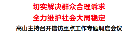 会上,高山听取相关地区和部门信访重点工作推进情况,对具体任务、工作职责进行再部署、再落实。他指出,社会大局和谐稳定是发展之基、民生之本。各地、各部门要提高政治站位,准确把握当前信访工作面临的新形势,时刻保持对矛盾纠纷、风险隐患的高度敏锐性,压实责任、细化举措、形成合力,坚决打好“源头预防”主动仗。